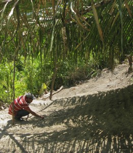 The path up to this La Muralla passes field after field of slashed and burnt land just like this. But local farmer Pablo planting