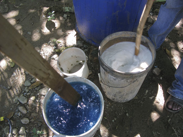 The organic fungicide we tried out this week is called Caldo Bordales, and is a relatively well-known organic pesticide which contains a mixture of two natural compounds; lime and copper sulphate, diluted to a concentration of 1%. Caldo Bordales is widely regarded as an effective fungicide and the ingredients required are cheap, making it a much more cost effective option than buying conventional pesticides.