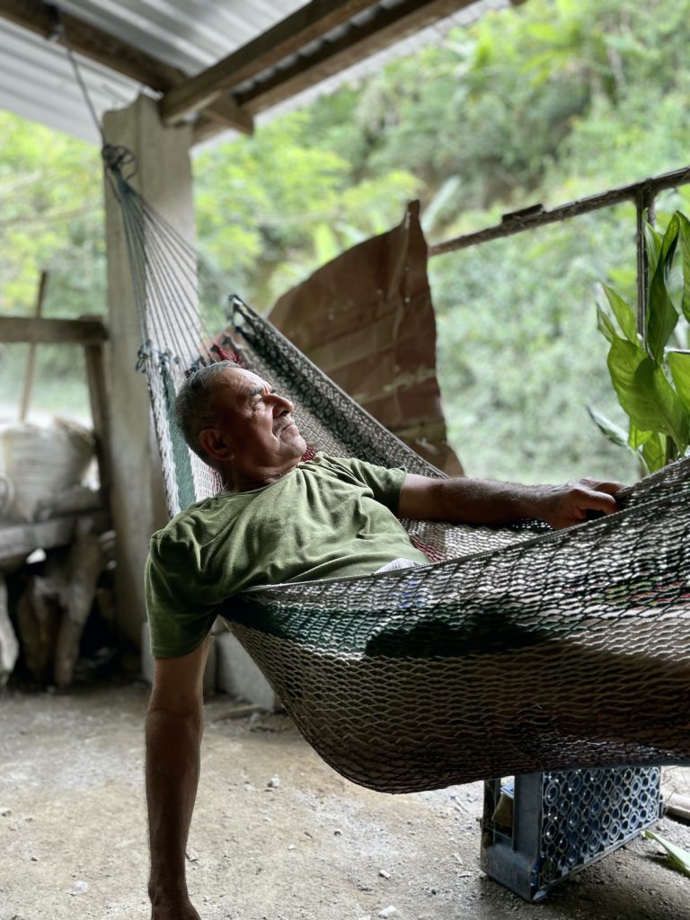 This is Luis, Inga Foundation’s chief Agronomist responsible for operations in the Cangrejal Valley catchment. This shot was, captured during a pause between visiting farmers, along with his fellow agronomist Alejandro (below left). Luis built himself a small house in the valley, a place to rest and recuperate, which his daughter Maria Jose (below right) can’t get enough of. It’s easier to stay here, rather than getting down the mountain into the city where he lives with his family, a journey of well over an hour depending on the state of the roads. Alejandro, another agronomist works alongside him.