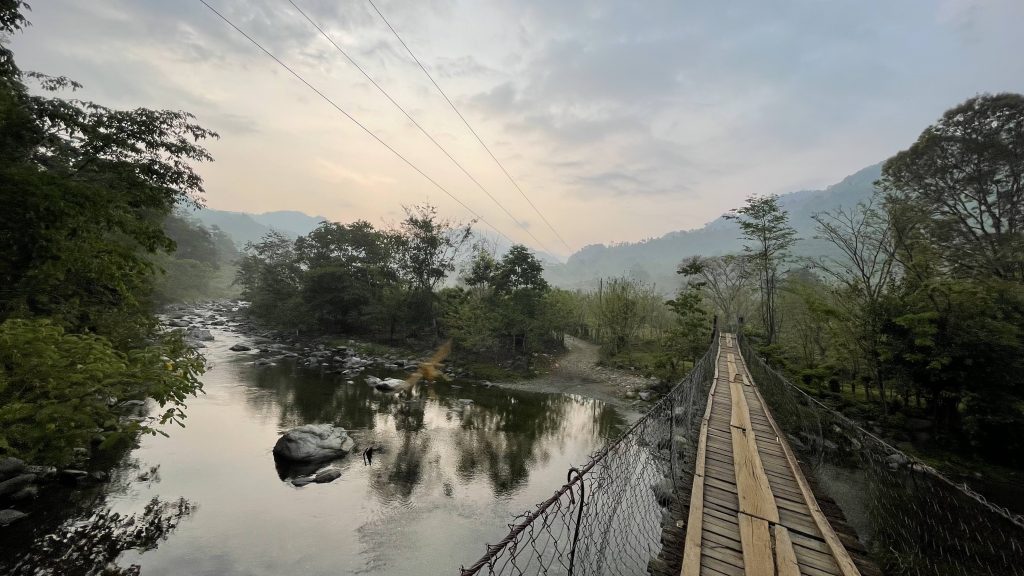 5:30am in the San Juan River Catchment, on the bridge that leads to the Inga Foundation. I slept in the Inga Foundation unit, and was up early for the best light to film on the farm. There was no end to the birdsong.