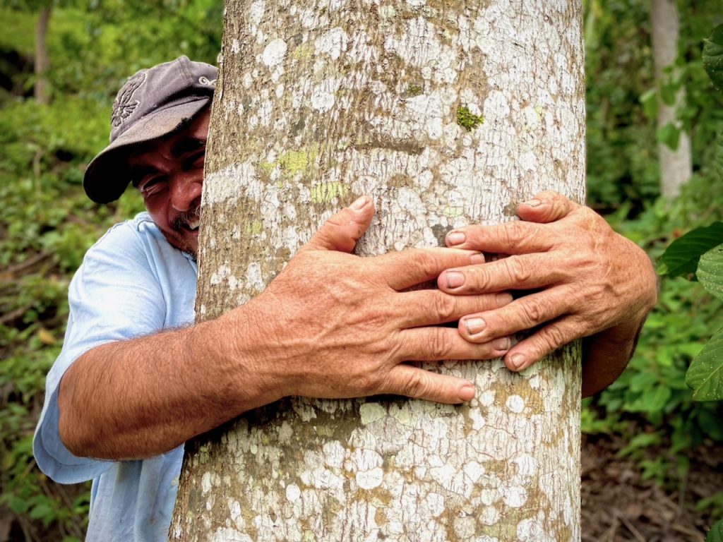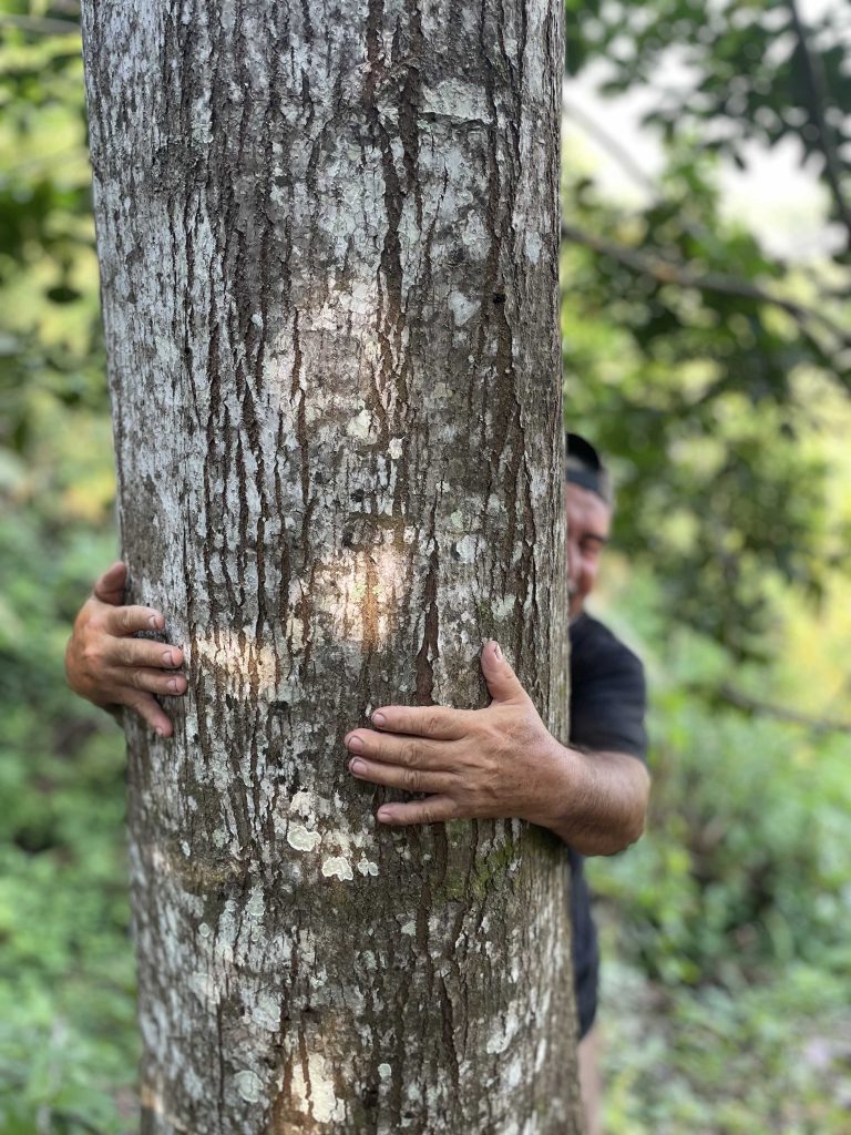 Before and after! This is Martín Garcia hugging a timber tree that’s going to change his life. Martin was one of Inga Foundation’s earliest farmers and when we met him he was earning 6 dollars a day working on someone else’s farm as a labourer. Inga Foundation has completely turned his life around.