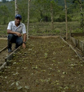Pablo, the newest member of our Honduran team, busy helping a farmer from the neighbouring village to plant out a new field of Inga